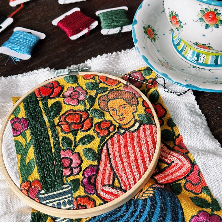 К выставке «Илья Машков. Авангард. Китч. Классика» в Третьяковской галерее мы вместе с современным российским брендом создали особенный набор для вышивания — по мотивам яркого и выразительного «Портрета В. П. Виноградовой» (1909).